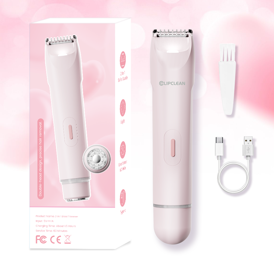 Women's Dual Head Electric Shaver - Multifunctional for Bikini, Face, Body, Arms and Thighs, USB Rechargeable 400mAh Li-ion Battery, Stainless Steel, Fashionable Light Pink, Ideal Gift